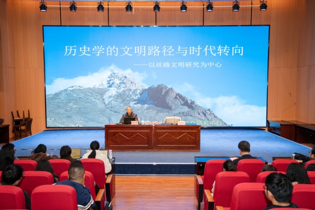 尚永琪教授以《历史学的文明路径与时代转向——以丝路文明研究为中心》为题进行主题讲座。尚永琪教授在讲座中阐述了将史料分析路径与现代科学体系融合在一起的观点,介绍了目前古典文献学界研究的一些新领域、新课题和新方向,同时还推荐了相关领域的经典著作,为这一领域的研究提供了重要的引领和示范作用。精彩的讲座得到现场师生一致好评。