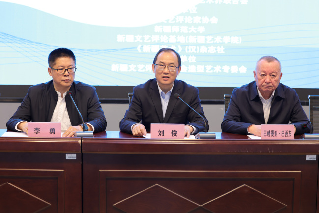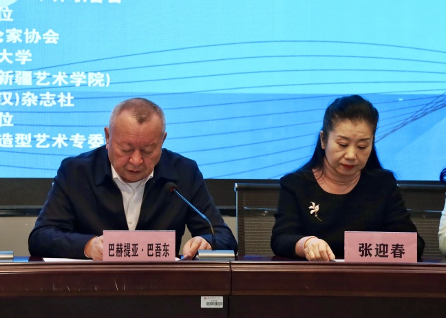 新疆文联二级巡视员巴赫提亚•巴吾东,校党委副书记刘俊,新疆文艺评论家协会副主席张迎春出席开班式。来自beat365唯一官网中国语言文学学院、音乐学院、美术学院、新疆艺术学院以及新疆其他高校的师生近300人以线上线下相结合的方式参加活动。活动由新疆文艺评论家协会副主席、beat365美术学院院长李勇主持。